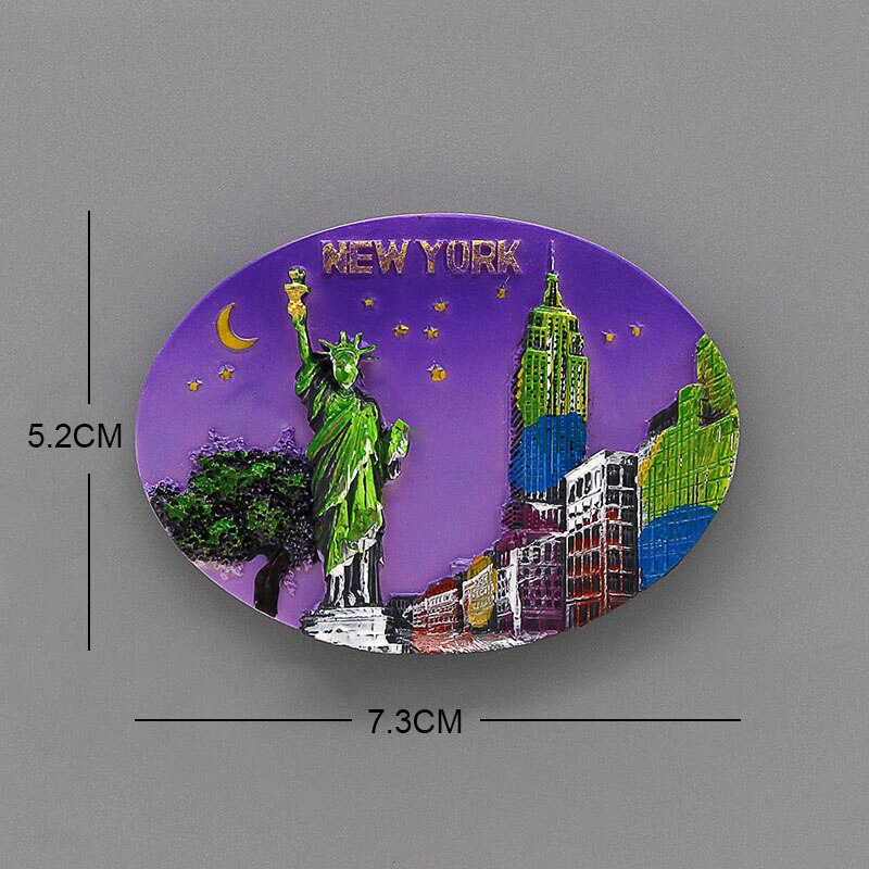 Show your pride for New York and its popular monuments with the Statue of Liberty/Empire State Building Fridge Magnet. Made from a special resin, this magnet is durable and weather resistant so it will last for years. It can be placed on any metal surface such as a refrigerator or filing cabinet to hold notes, memos and photos. The magnet comes in eight separate styles.