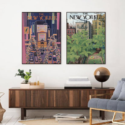 Bring the brilliance of The New Yorker magazine covers to your wall. Each canvas painting is created by a unique artist that captures a moment in time and has a story to go with it. These unique pieces can be placed individually throughout the house or office, but they can also be combined as a group to create an impressive collage."