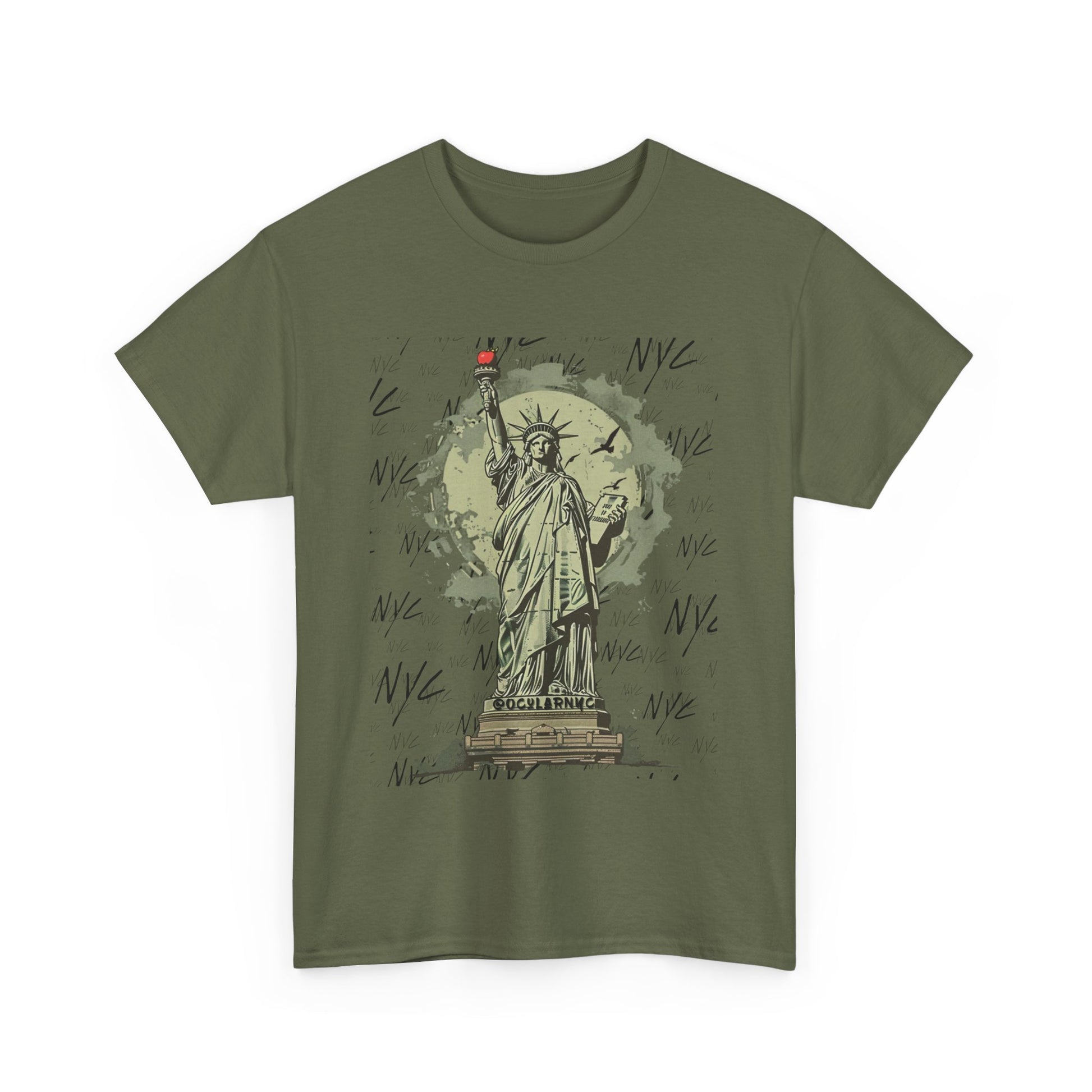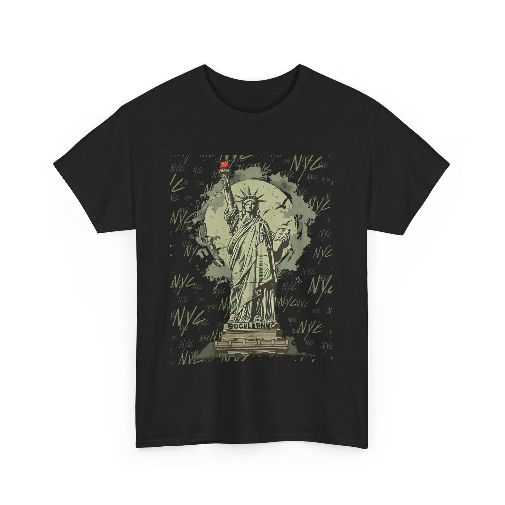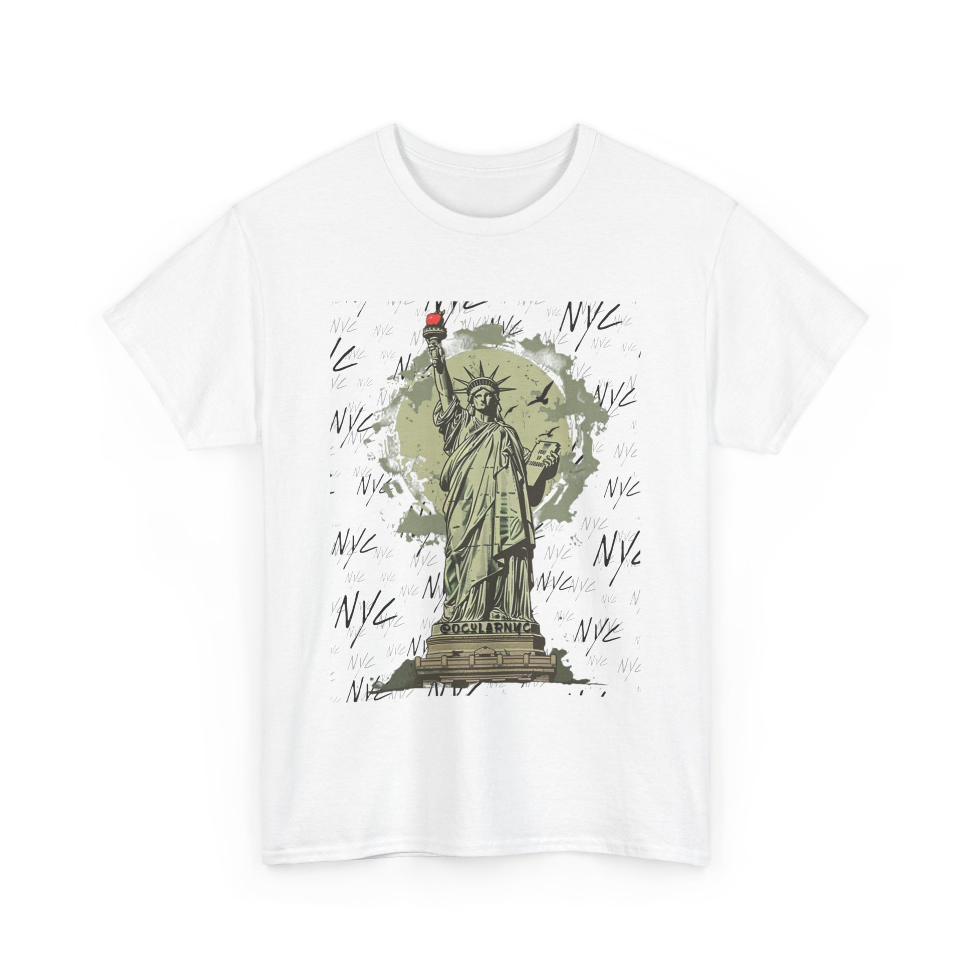 Introducing the OCNY Original Statue of Liberty Unisex Tee, crafted from premium 100% US cotton for year-round comfort and durability. With a classic fit and crew neckline, it's perfect for any occasion. Enjoy a scratch-free experience with its seamless design and tear-away label. Plus, rest easy knowing it's ethically produced and certified for safety and quality.The unisex heavy cotton tee is the basic staple of any wardrobe. It is the foundation upon which casual fashion grows. All it needs is a personalized design to elevate things to profitability. The specially spun fibers provide a smooth surface for premium printing vividity and sharpness. No side seams mean there are no itchy interruptions under the arms. The shoulders have tape for improved durability.