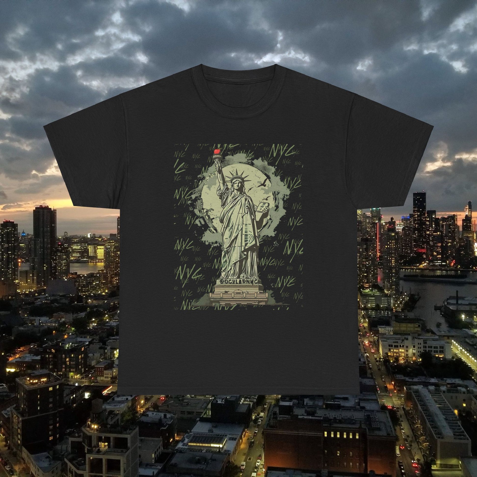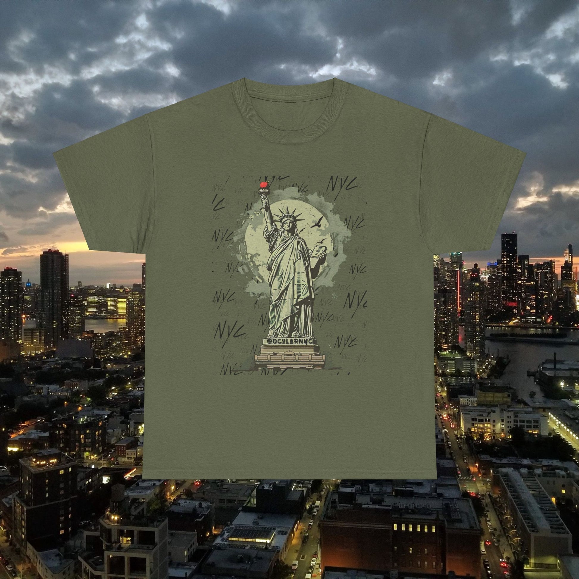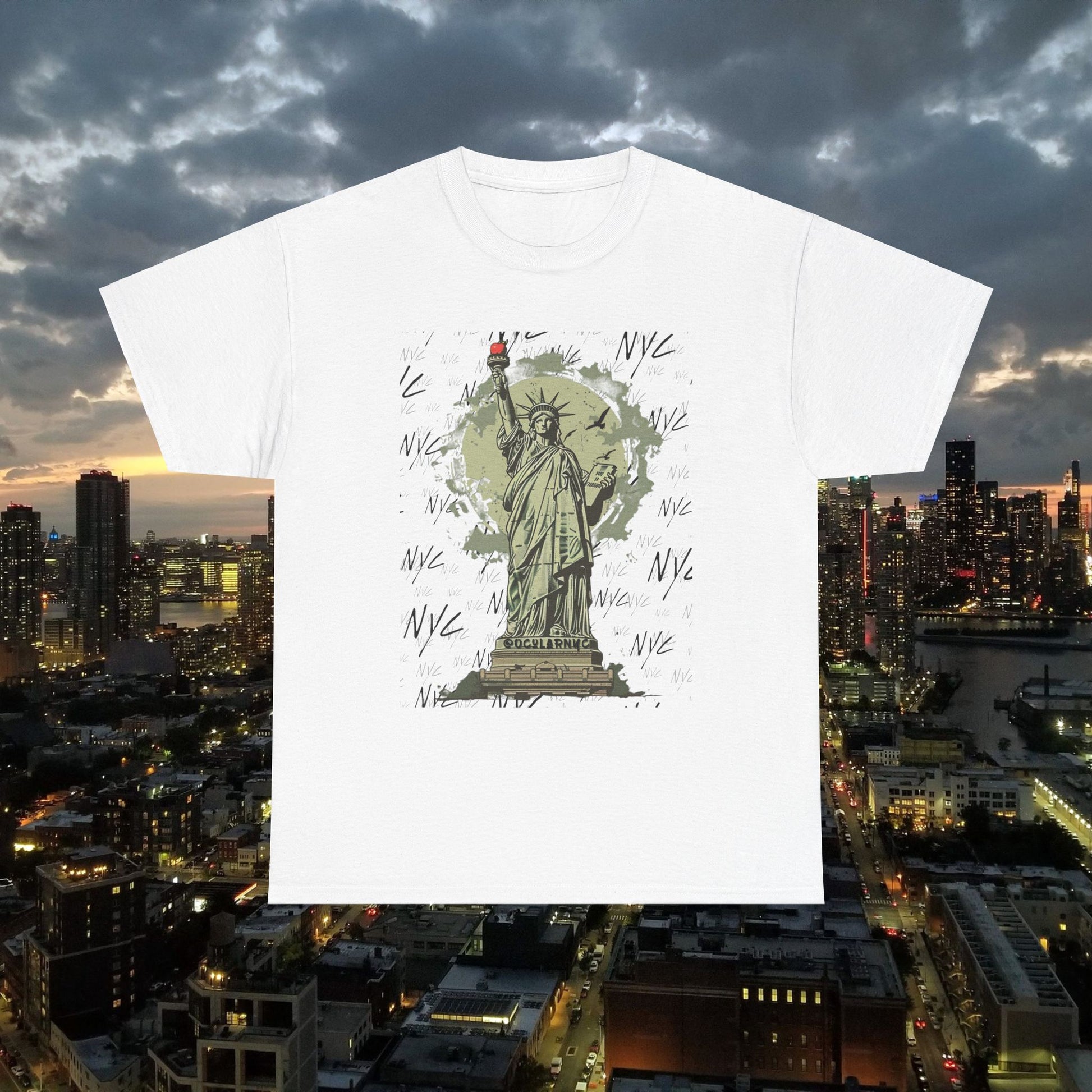 Introducing the OCNY Original Statue of Liberty Unisex Tee, crafted from premium 100% US cotton for year-round comfort and durability. With a classic fit and crew neckline, it's perfect for any occasion. Enjoy a scratch-free experience with its seamless design and tear-away label. Plus, rest easy knowing it's ethically produced and certified for safety and quality.The unisex heavy cotton tee is the basic staple of any wardrobe. It is the foundation upon which casual fashion grows. All it needs is a personalized design to elevate things to profitability. The specially spun fibers provide a smooth surface for premium printing vividity and sharpness. No side seams mean there are no itchy interruptions under the arms. The shoulders have tape for improved durability.