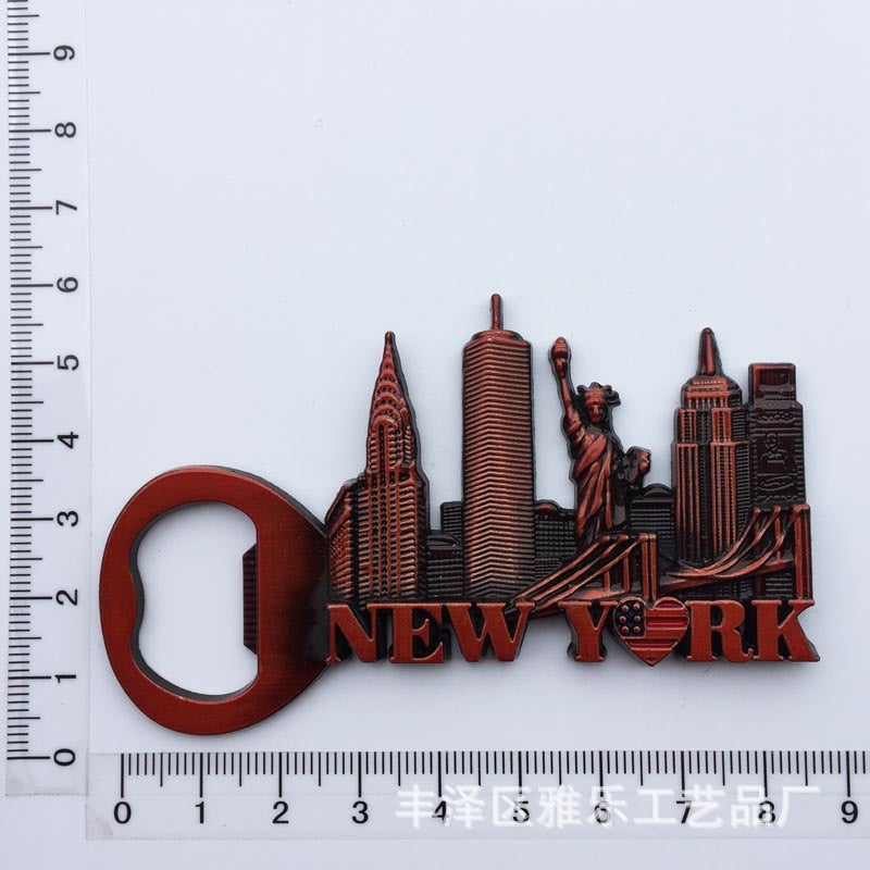 Show your pride for New York and its popular monuments with the NY Bottle Opener/NYC Fridge Magnet. Made from a special resin, this magnet is durable and weather resistant so it will last for years. It can be placed on any metal surface such as a refrigerator or filing cabinet to hold notes, memos and photos. The magnet comes in two separate styles.